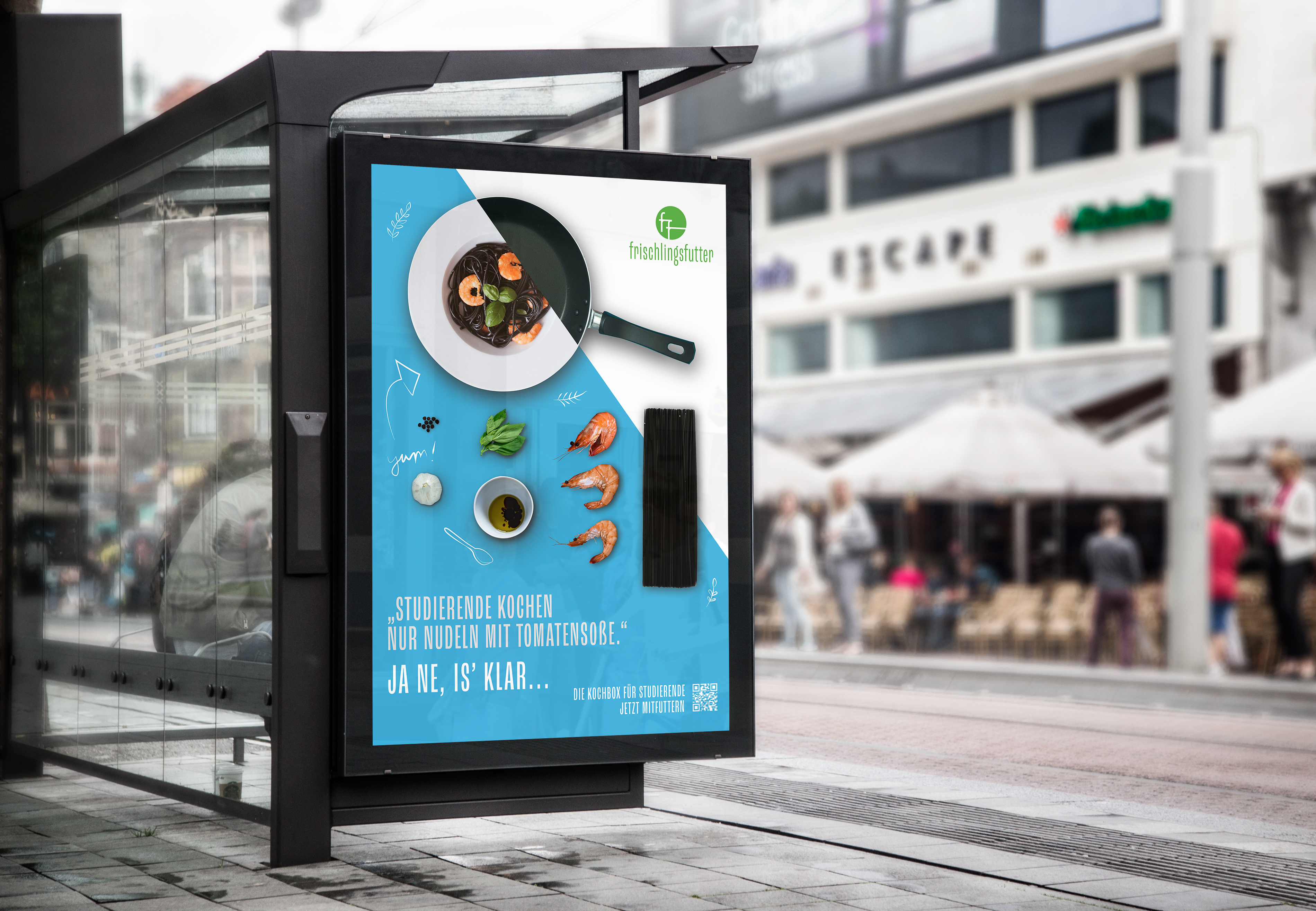 First of all I'd done all my research about food trends in the project study preparing to write the concept of a cookbox exclusively for students. This project includes poster series, screen design for application (caseboard) and landingpage, caseboard of social media actions of the brand, recipe card, flyer and cards and of course the corporate design.